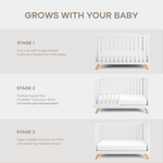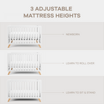 Baby Crib for 0 to 3 Years - White Bars and Frame and Natural Wood Leg