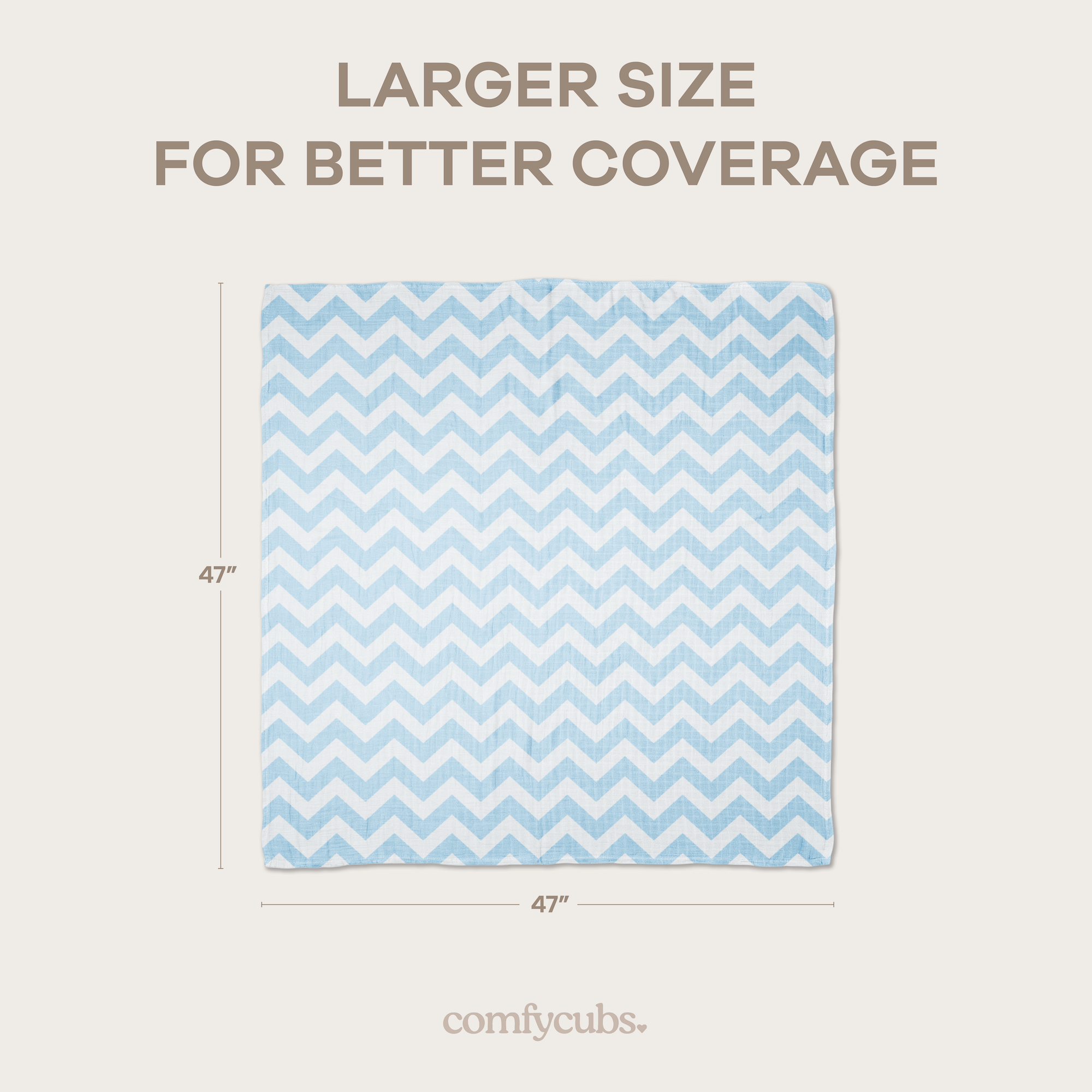 Larger Size for Better Coverage – Comfy Cubs baby boy and baby girl swaddle blankets are a generous 47” x 47” in size which means they can be wrapped up more securely from the shoulders to the feet or provide a bigger space for rolling and playing.