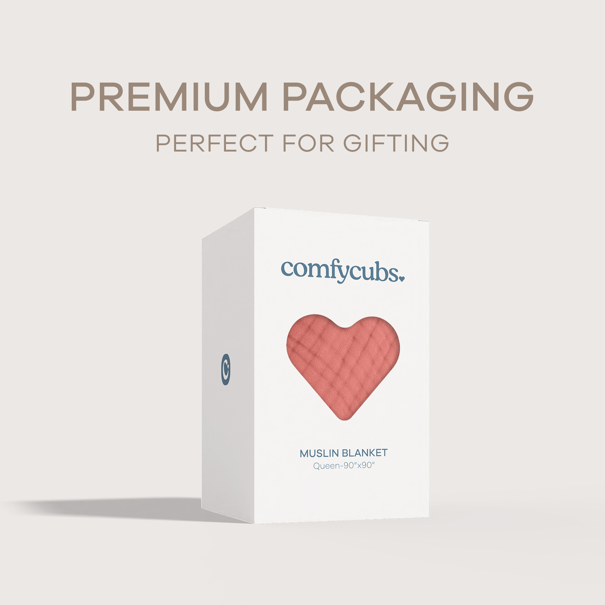 Breathable Muslin Cotton – We use 100% Muslin cotton in our soft muslin blankets which means they’re gentler on sensitive skin and keep your body cooler throughout the night.