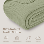 Breathable Muslin Cotton – We use 100% Muslin cotton in our soft muslin blankets which means they’re gentler on sensitive skin and keep your body cooler throughout the night.