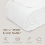 Breathable Muslin Cotton – We use 100% Muslin cotton in our soft muslin blankets which means they’re gentler on sensitive skin and keep your body cooler throughout the night.