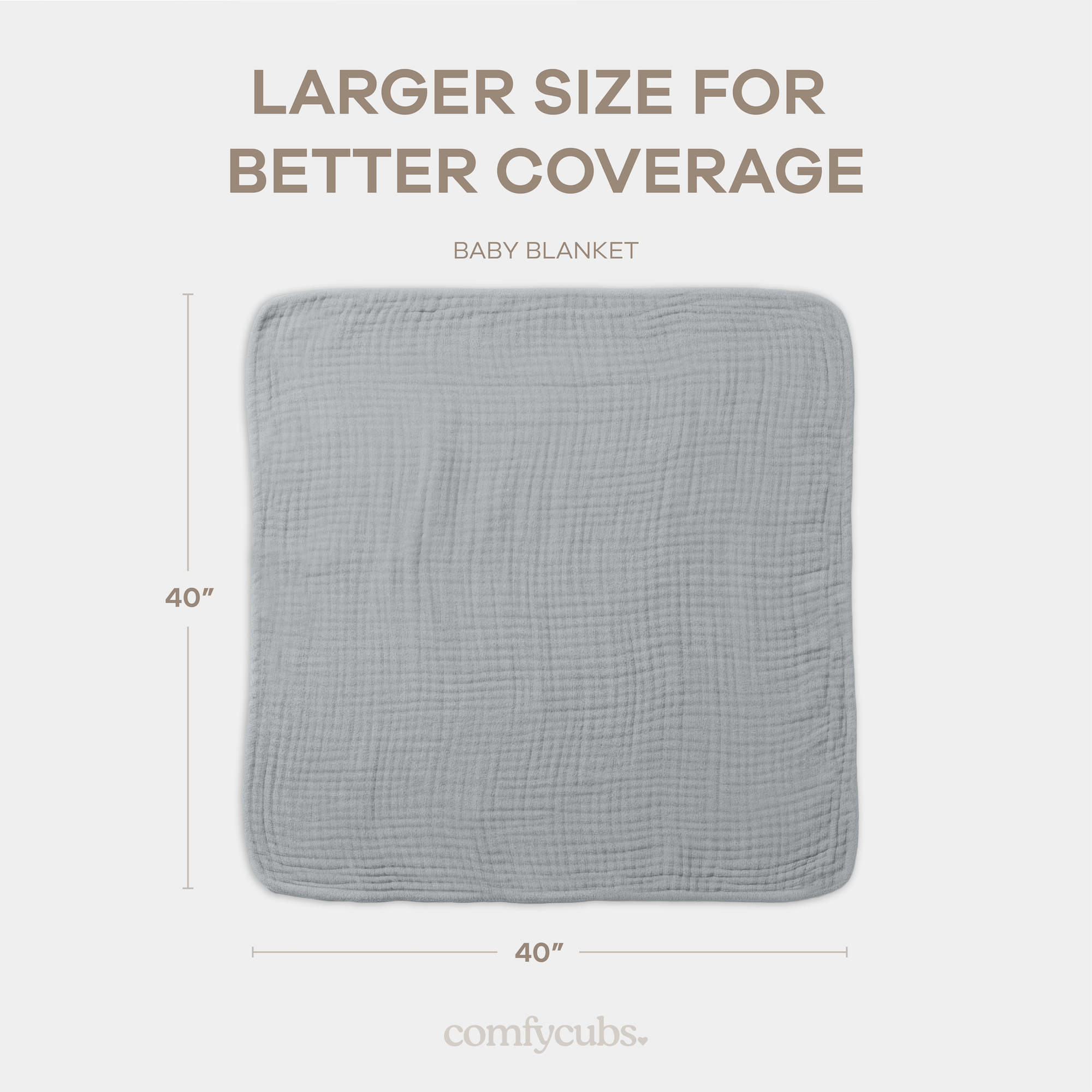 Keep your baby warm, cozy, and snuggable in a cute muslin baby blanket from Comfy Cubs that offers superior softness and a larger, more versatile size. Every baby deserves a blanket that’s not only soft and warm but really supports their sensitive skin. That’s why we created these unique Comfy Cubs baby blankets made with high-quality muslin cotton. They offer a plush comfort that’s perfect for enjoying a quick nap in their crib, staying warm on a stroller ride, enjoying some tummy time at the park, and so much more. In fact, the fluffy, honeycomb-style weave provides helps absorb sweat and moisture, while the 6-layer fluffiness provides more cushioned support that feels good all over. And because they’re easy to use at home or on the go, they never have to leave their favorite blankie behind.