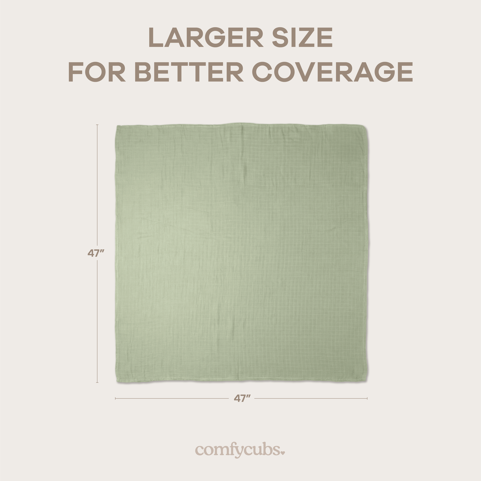 Larger Size for Better Coverage – Comfy Cubs baby boy and baby girl swaddle blankets are a generous 47” x 47” in size which means they can be wrapped up more securely from the shoulders to the feet or provide a bigger space for rolling and playing.