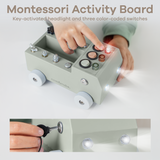 Realistic Features for Engagement: The Comfy Cubs busy board Montessori toy comes with key-turn headlights and three colorful light switches, designed to mimic real tools. This wooden toy truck is ideal for sparking curiosity and keeping little ones engaged in imaginative play.