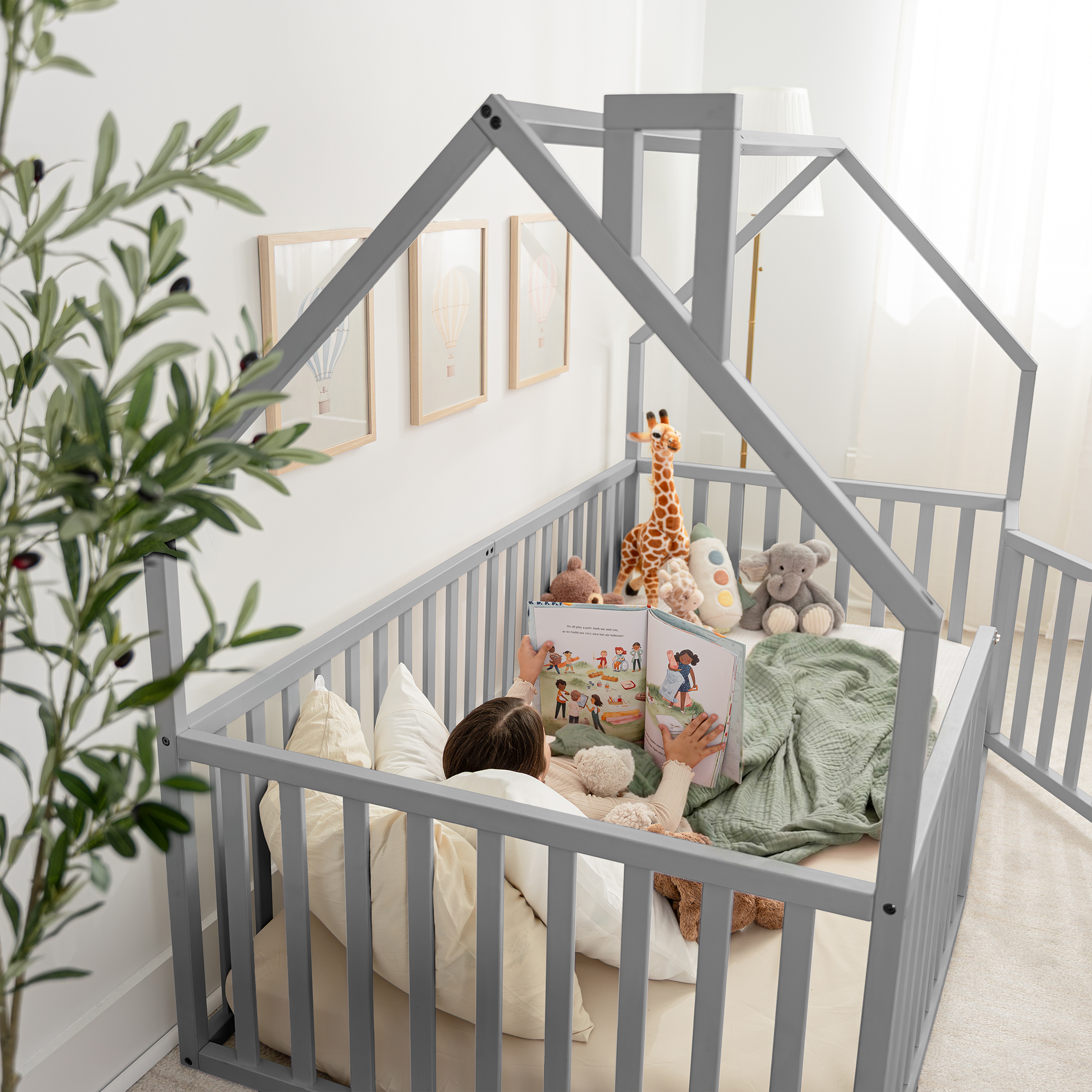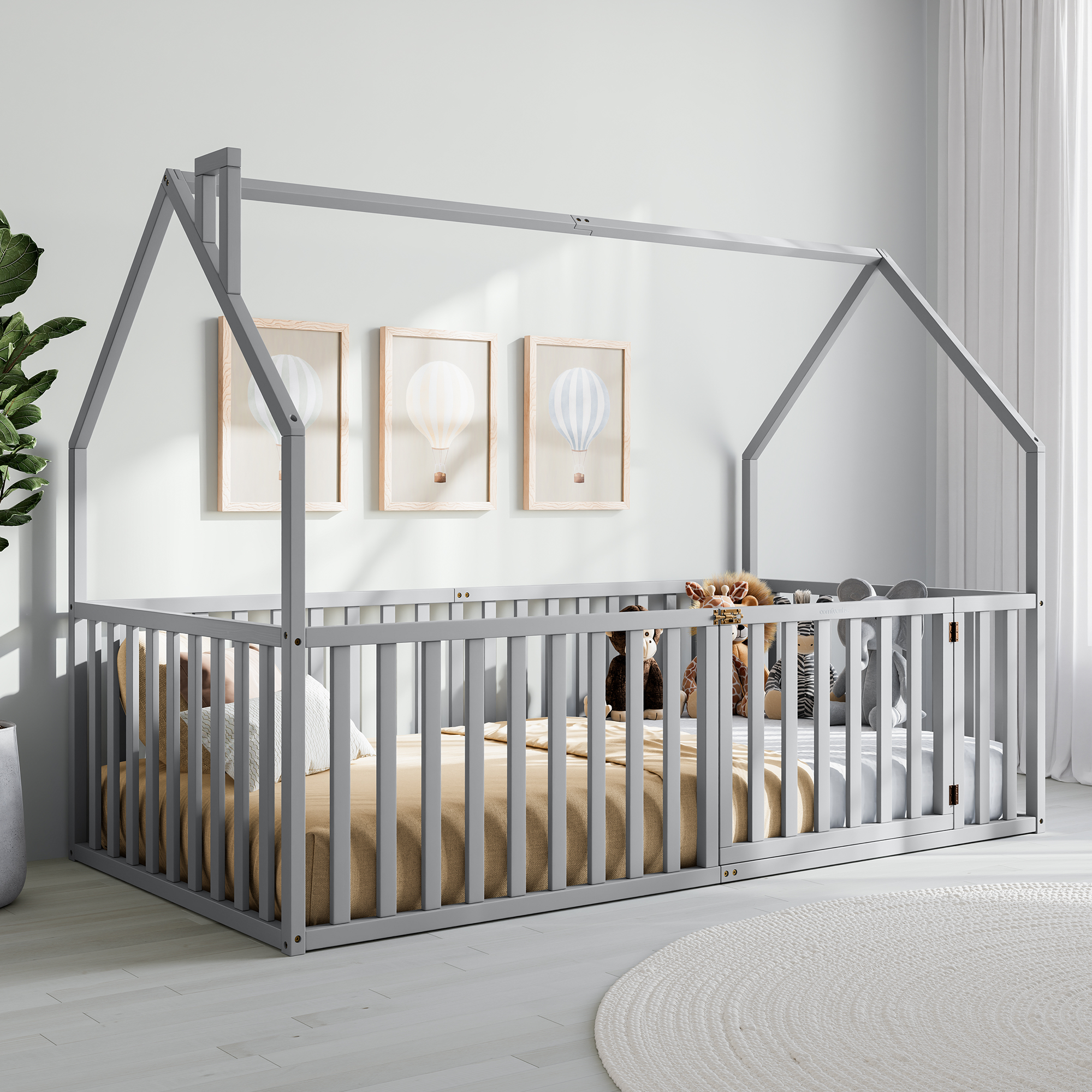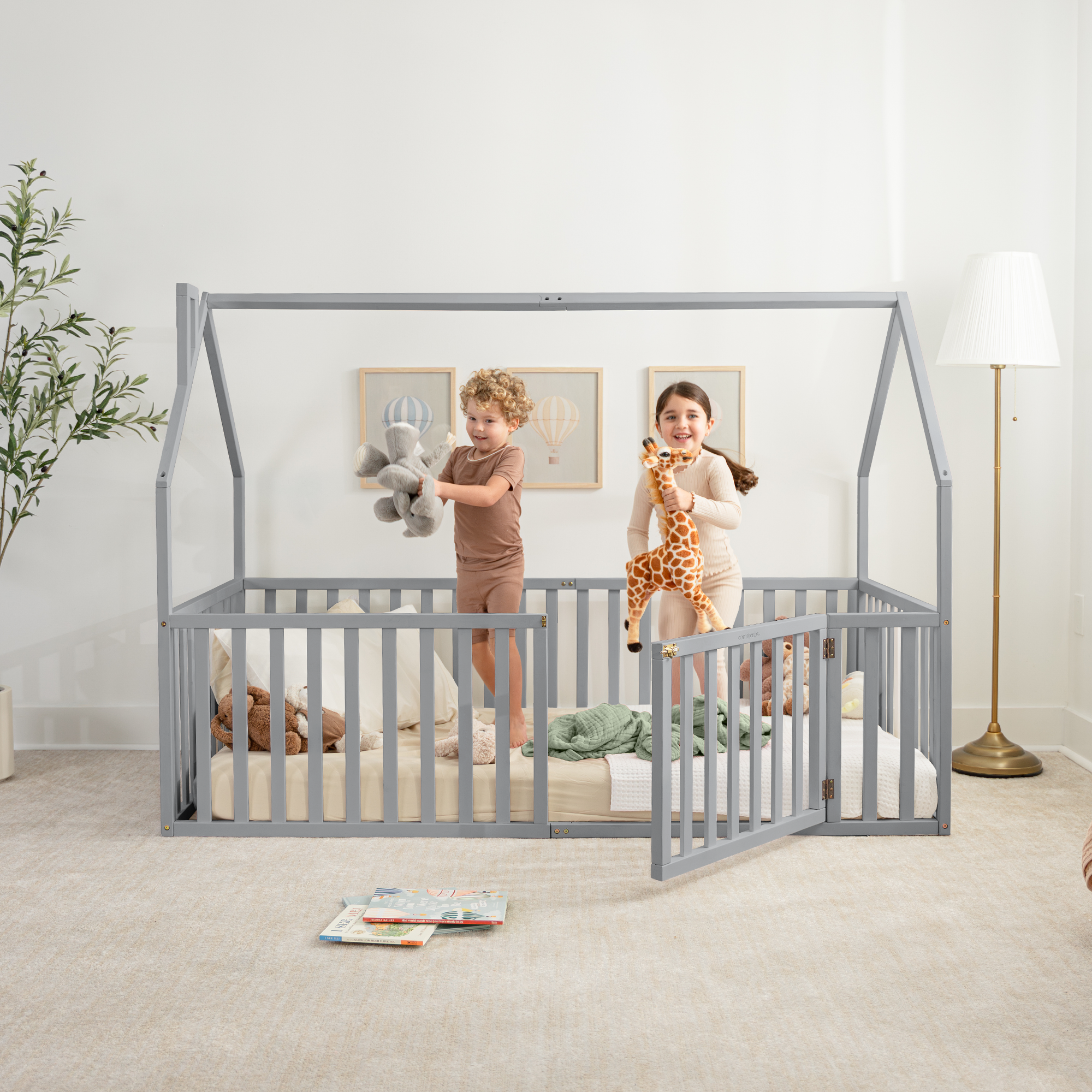 Kids House Gated Floor Bed Twin Size for Children Aged 5+, Grey