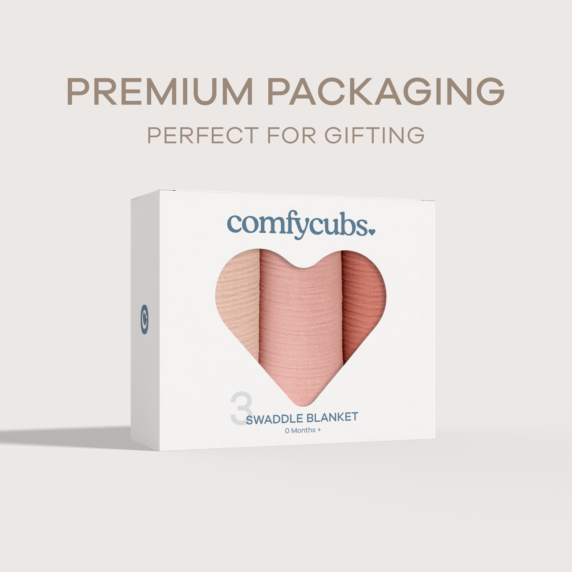 Parenting becomes more delightful and manageable with Comfy Cubs muslin swaddles for newborns. Designed with both comfort and functionality in mind, this baby muslin swaddle blanket set is a must-have for any parent or caregiver. Each swaddle muslin blanket is crafted with high-quality muslin cotton, offering an unparalleled combination of softness, breathability, and absorbency. The lightweight baby blanket fabric ensures your baby stays comfortable during summer naps or cozy on chilly evenings, making it a versatile year-round essential.