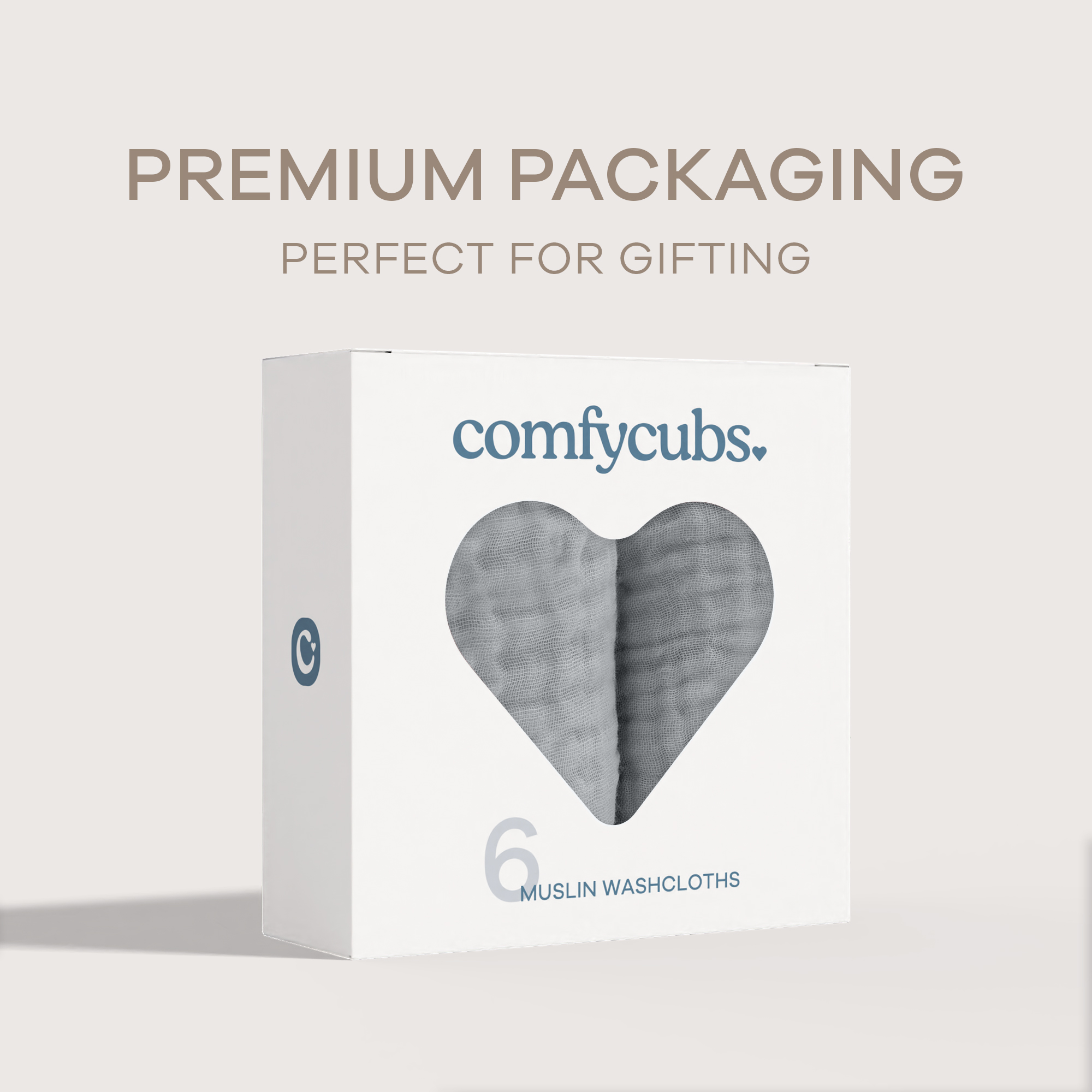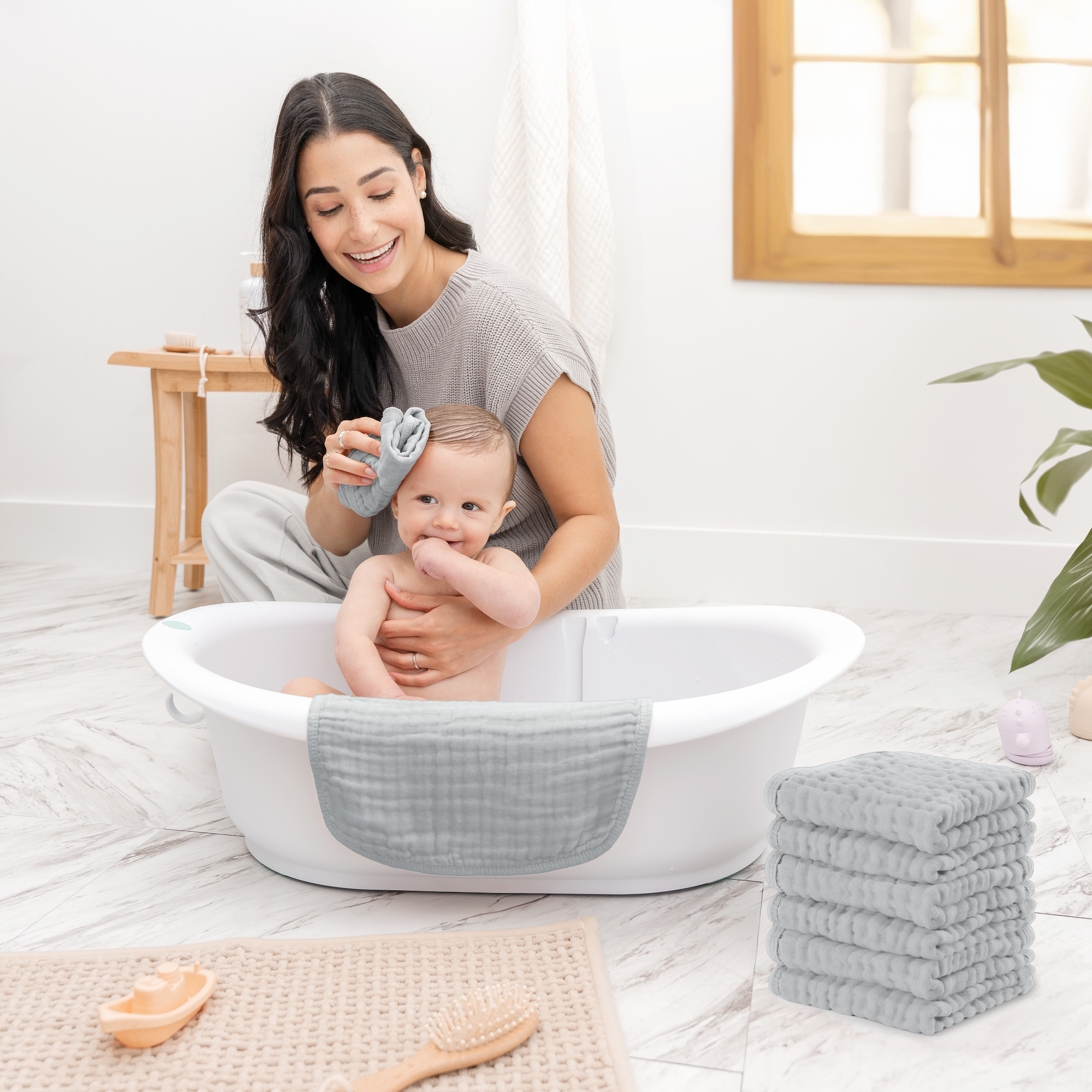 Give your baby a softer, more comfortable bath while keeping them cleaner from head to toe with premium muslin cotton washcloths from Comfy Cubs. Here at Comfy Cubs we know exactly what it’s like to raise babies and small toddlers. They always seem to be messy, sweaty, and in need of a quick bath. That’s why when it’s bath time you want washcloths that aren’t just easy to use and big enough to scrub up their whole body, you want them to be softer and gentler on sensitive baby skin. We created these luxury-grade muslin cotton baby washcloths so you can start keeping them cleaner all over while better supporting their skin. Offering a super plush feel that’s soft to the touch our 6-layered muslin cotton washcloths help improve the lather while whisking away dirt, so you can care for their delicate skin while keeping those milk odors and messes to a minimum.