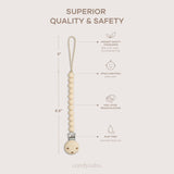 • Soothing Silicone Beads-  Featuring a practical and smooth beaded design, made with perfectly safe materials with no phthalates, PVC or lead, this baby pacifier clip has a soothing and calming effect during teething periods